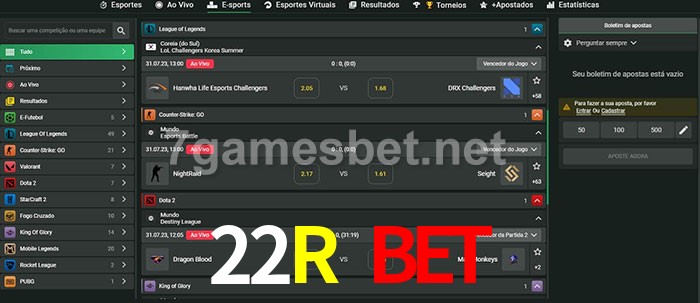 O 22R Bet oferece uma grande seleção de opções de apostas em e-sports com probabilidades competitivas